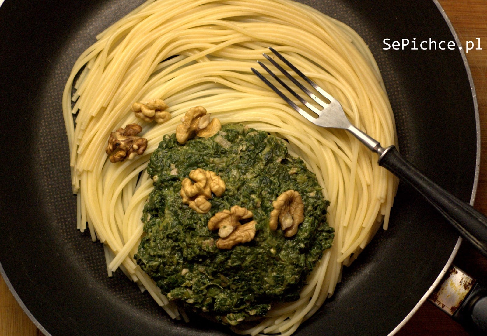 Spaghetti ze szpinakiem i orzechami włoskimi ... lekka obiado-kolacja.